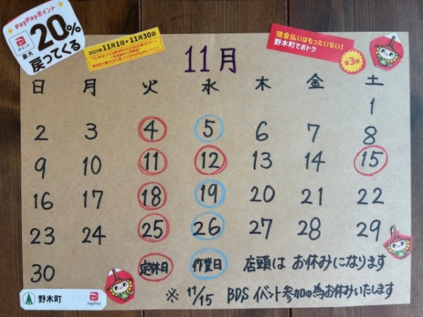 今月は定休日、作業日と15日(土)もBDSイベント参加のため