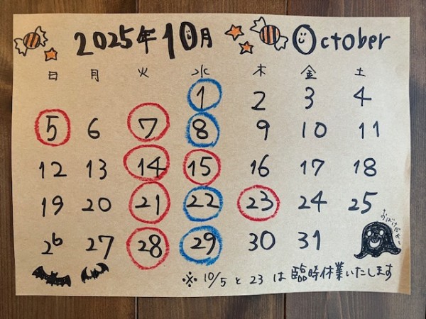 今月の営業日カレンダー作成致しました!